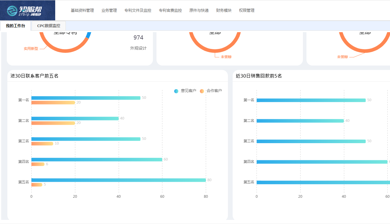 知服帮知识产权管理系统意识到了这一点,最先在管理系统中增加了数据统计分析的功能。